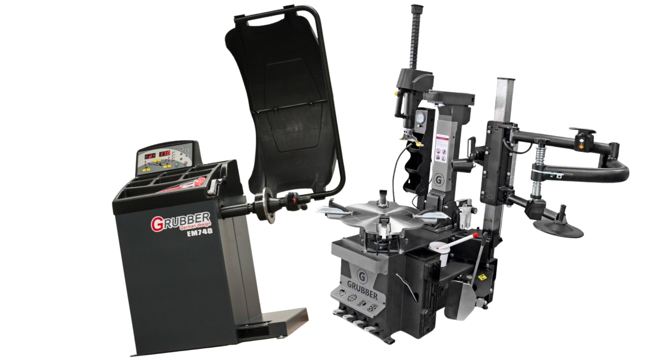 SET 4: Automatická prezúvačka Grubber GR922 s pomocným ramenom RunFlat + Automatická vyvažovačka Grubber EM740 ULTRA LASER