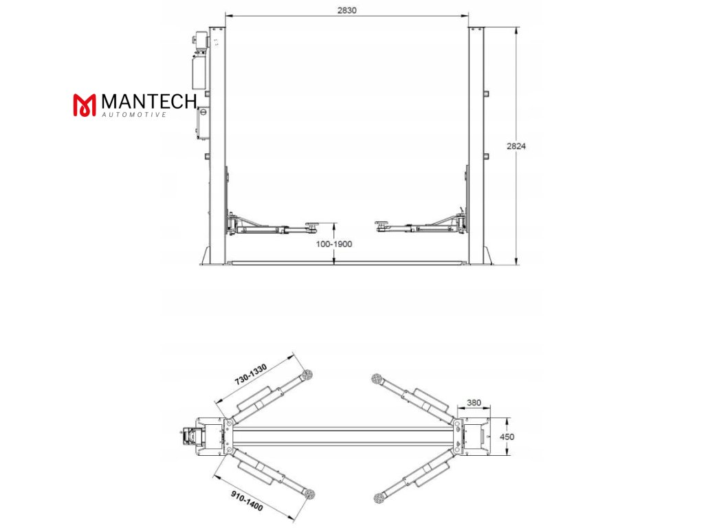 ✅Toto riešenie robí zdvihák všestrannejším ako zdviháky so symetrickými ramenami; dokáže zdvíhať malé osobné autá, SUV, vozidlá s pohonom 4x4, dodávky a väčšinu autobusov.