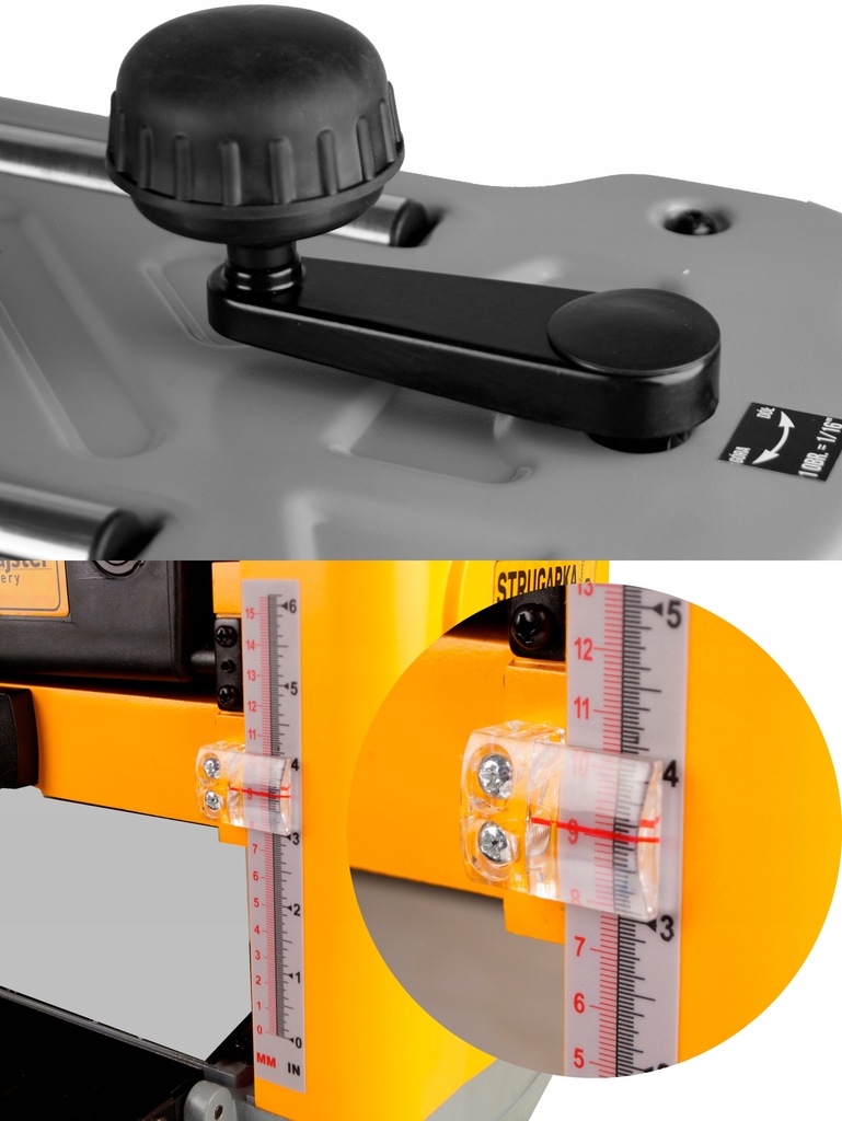 ✅Stupnica zobrazuje aktuálny rozsah hobľovania. Vďaka tomuto inovatívnemu riešeniu okamžite vidíte aktuálne nastavenie a hrúbku hobľovaného materiálu.