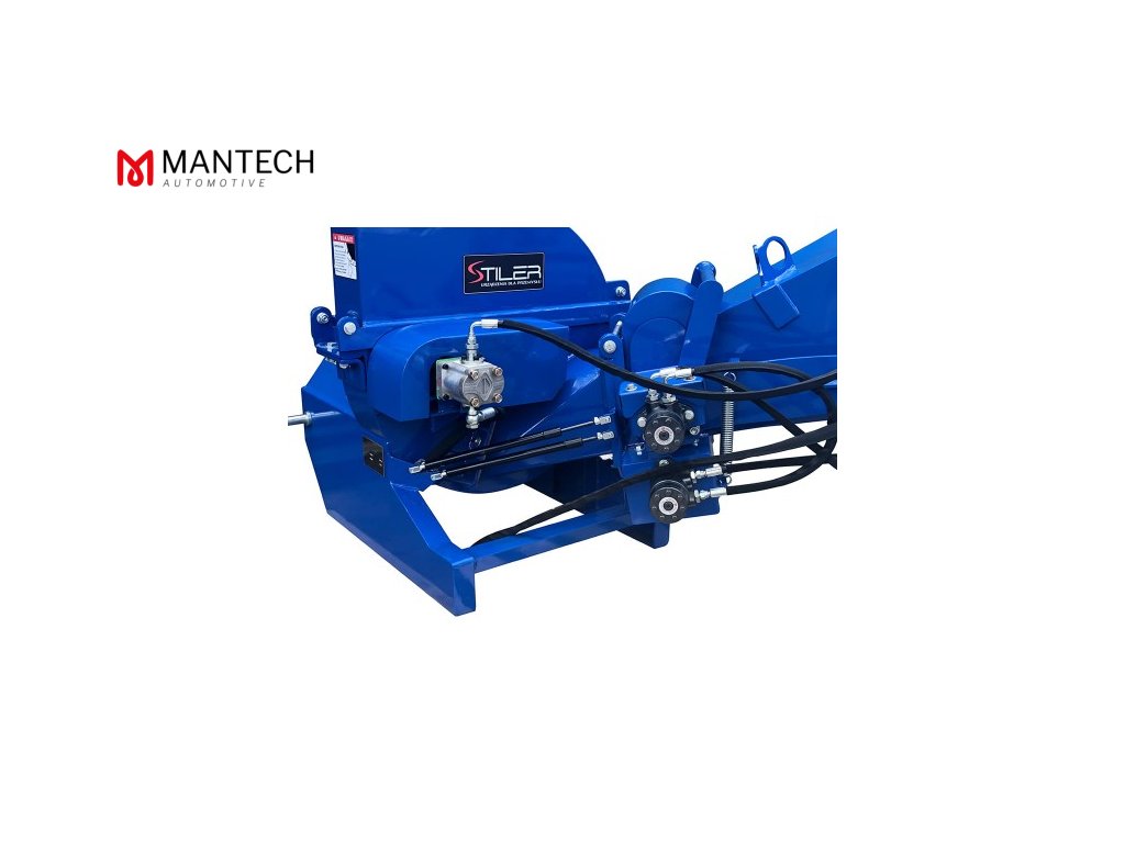 - Pohon z traktora na štiepkovač sa prenáša pomocou prevodového hriadeľa vybaveného poistným čapom, ktorý sa v prípade nadmerného zaťaženia stroja strihá a odpojí priamy pohon.